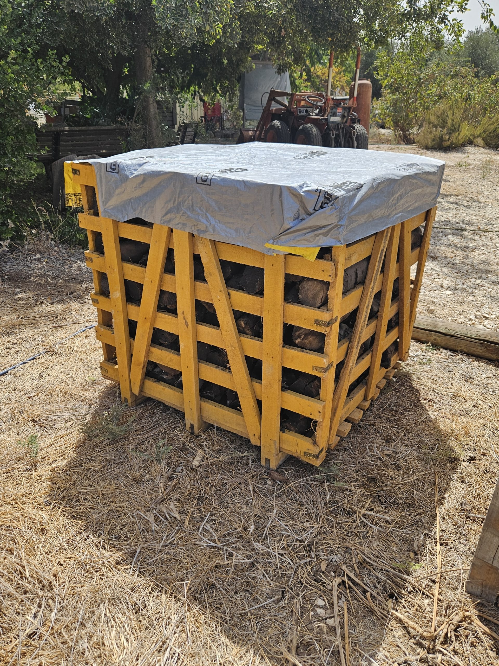 ארוז בכלוב מטר קוב – לא שק – מאפשר לראות את כמות ואיכות העץ המסודר בכלוב.